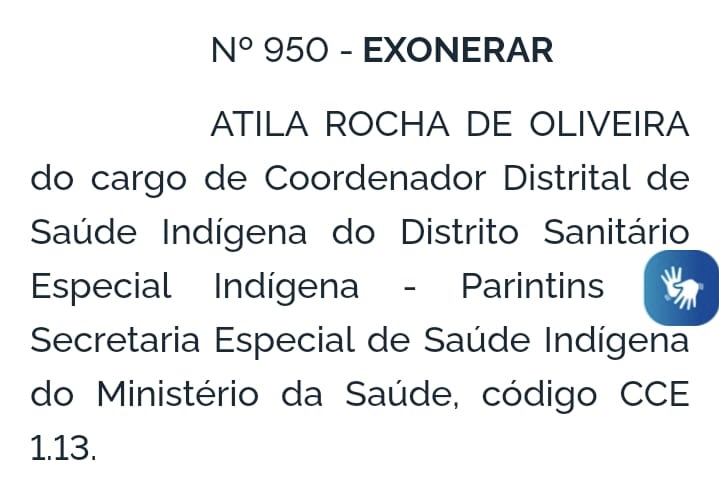 Um dos exonerados é o coordenador do Dsei/Parintins, Átila Rocha.