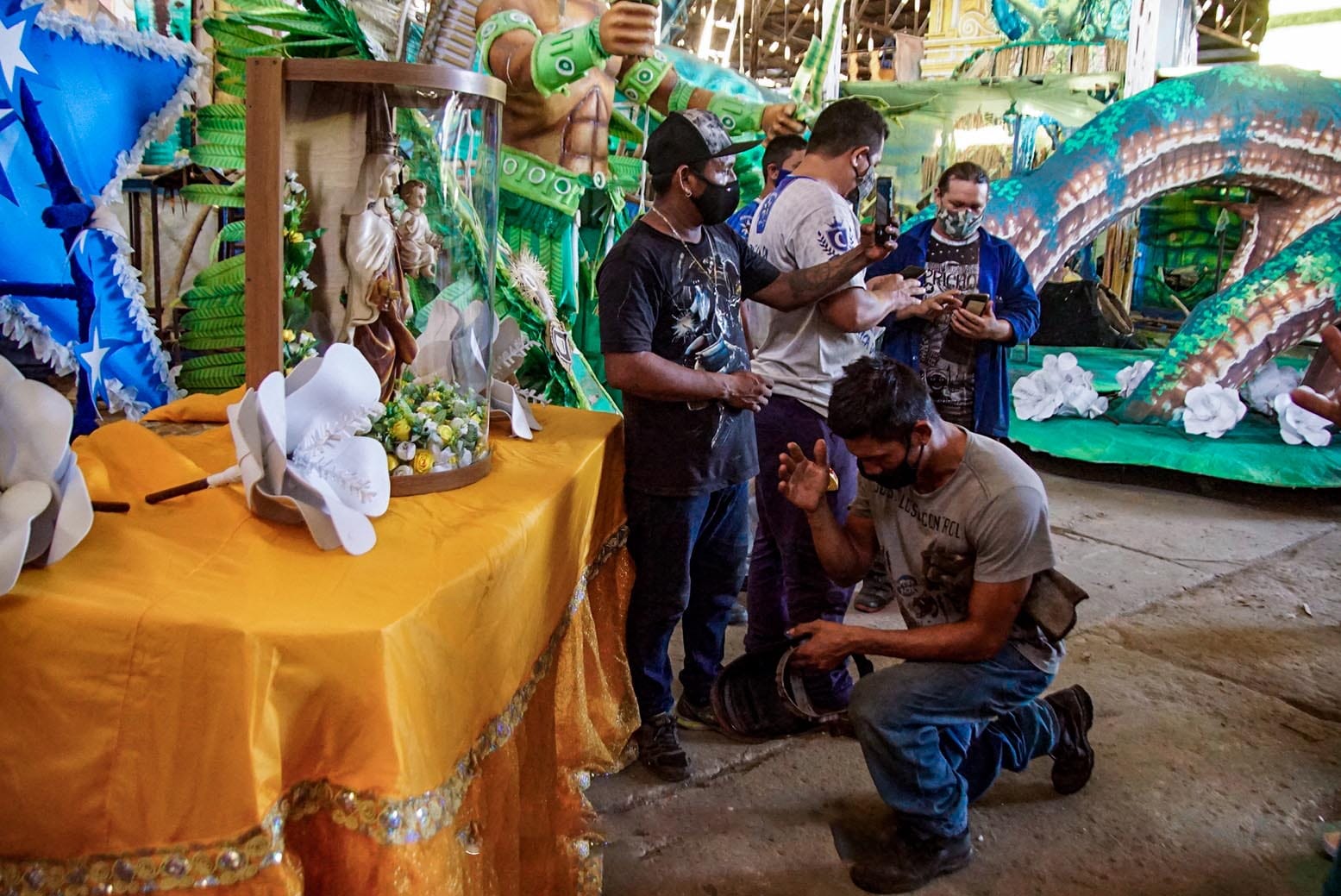 O alegorista ficou emocionado ao pisar no galpão. "É um sentimento de felicidade, de gratidão a Deus. Sabemos tudo que a gente passou e a nossa classe foi uma das mais afetadas no Carnaval do Rio de Janeiro, São Paulo e no Festival de Parintins. Ficamos dois anos passando por dificuldades por não podermos trabalhar. Conseguimos sobreviver e nos reinventamos. Voltamos ao trabalho no Carnaval e agora ao Festival de Parintins, para podermos ter uma renda e colocarmos alimentos dentro de casa", explicou.