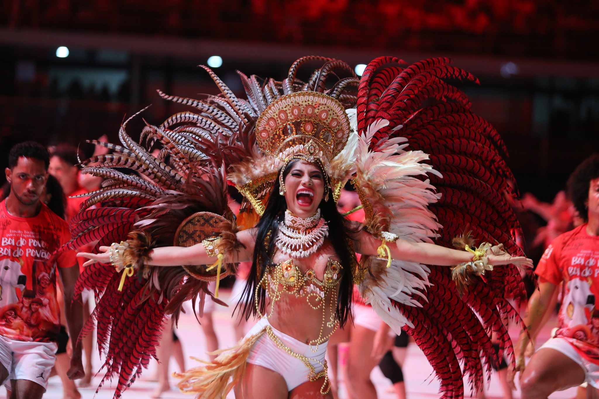 Estreando como porta-estandarte, Jevenny Mendonça revelou a emoção de pisar pela primeira vez na arena como item oficial. Formada no grupo de dança Garantido Show, ela promete entregar o melhor para a nação encarnada.