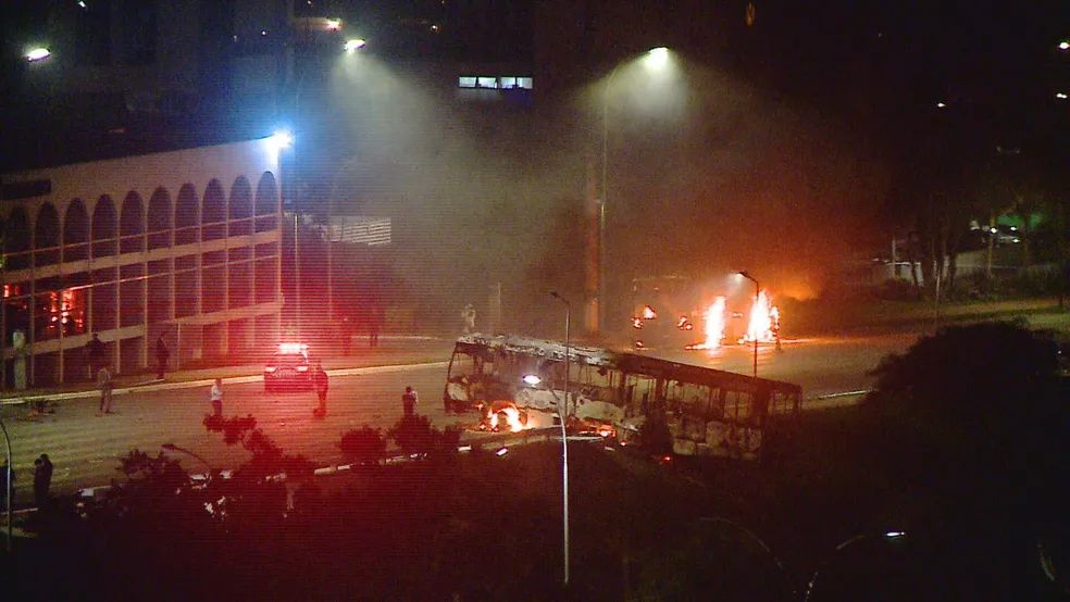 Apoiadores radicais do presidente Jair Bolsonaro (PL) deflagraram uma série de atos de vandalismo em Brasília na noite de segunda-feira (12). Carros e ônibus foram danificados e incendiados. A Polícia Militar entrou em confronto com os bolsonaristas.