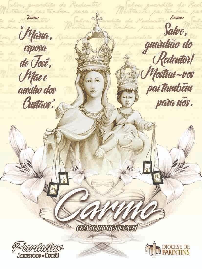 Parintins/AM - A Diocese de Parintins lançou nesta quarta-feira (16), o cartaz e o tema oficial da Festa em Honra a Nossa Senhora do Carmo 2021, que terá como tema “Maria, esposa de José, Mãe e auxílio dos Cristãos”, e o lema “Salve, guardião do redentor! Mostrai-vos pai também para nós”. A festa em honra a padroeira de Parintins acontecerá de 06 a 16 de julho.