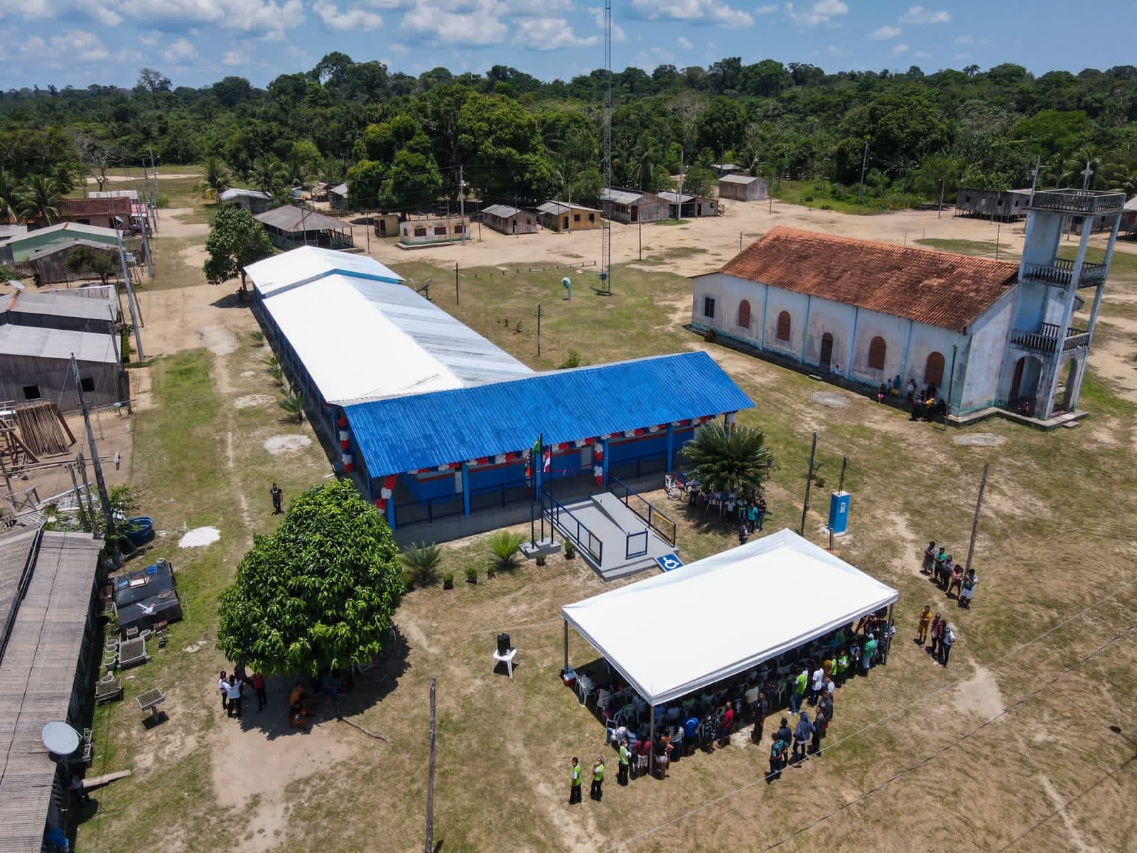 No São Tomé, assim como nas demais comunidades, pais e alunos participaram da cerimônia de entrega da escola Municipal Maria Belém, que ganhou nova pintura e cobertura, novas salas, refeitório, mobília e equipamentos didáticos para professores e todo corpo discente. “A nossa comunidade estava esperando. Era um trabalho que a gente via acontecer. Ganhamos novo reservatório de água que vai dar mais segurança para os comunitários que não vão mais precisar ir lá na beirada para fazer as coisas de casa”, disse o coordenadora da comunidade, José Nascimento.