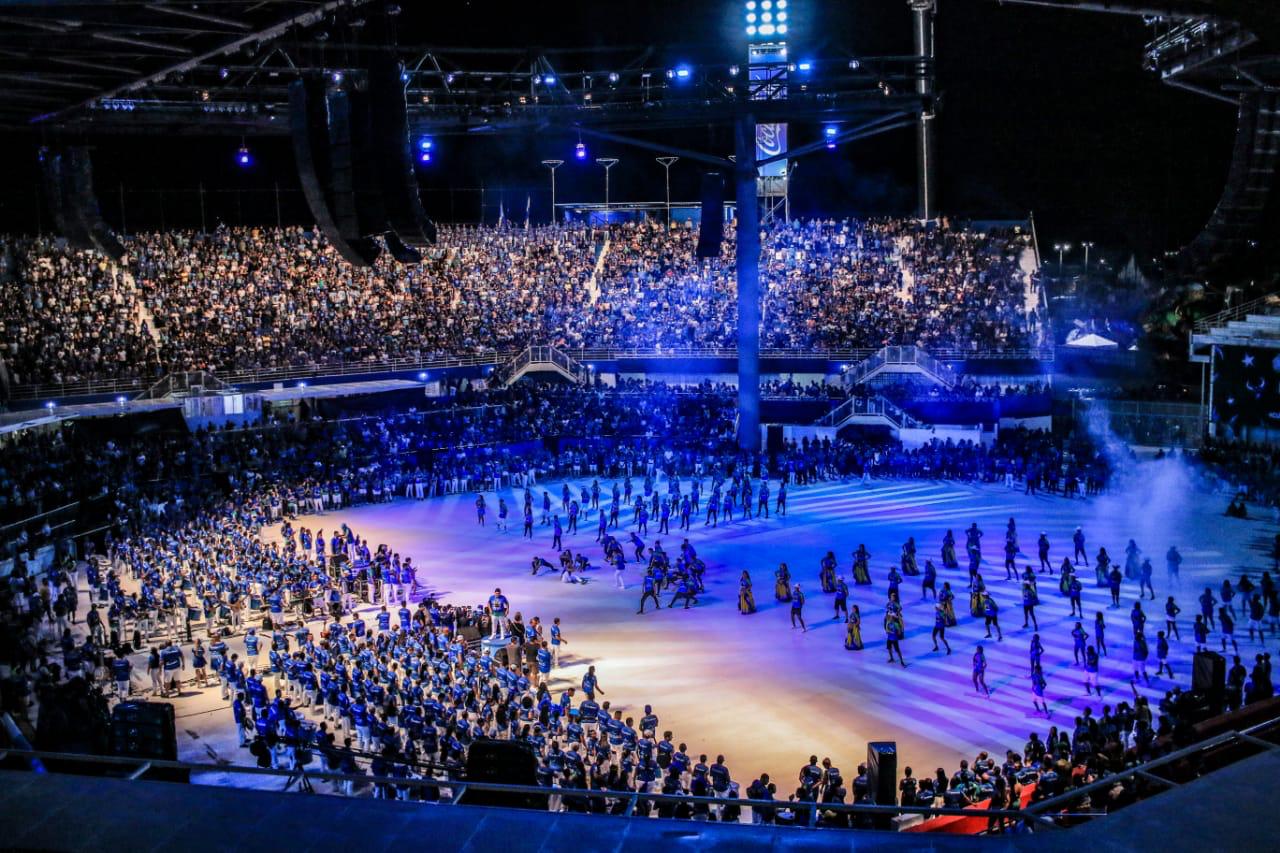 Parintins (AM) - O Centro Cultural de Parintins, o Bumbódromo, voltou a ter o clima de espetáculo com o ensaio do Boi-Bumbá Caprichoso nesta noite de terça-feira, 21. Nas arquibancadas e na arena, a emoção tomou conta da nação azulada. A cada apresentação de itens individuais ou coletivo uma vibração diferente pela festa que volta à arena sagrada e possibilita o reencontro de galera e seu Touro amado.