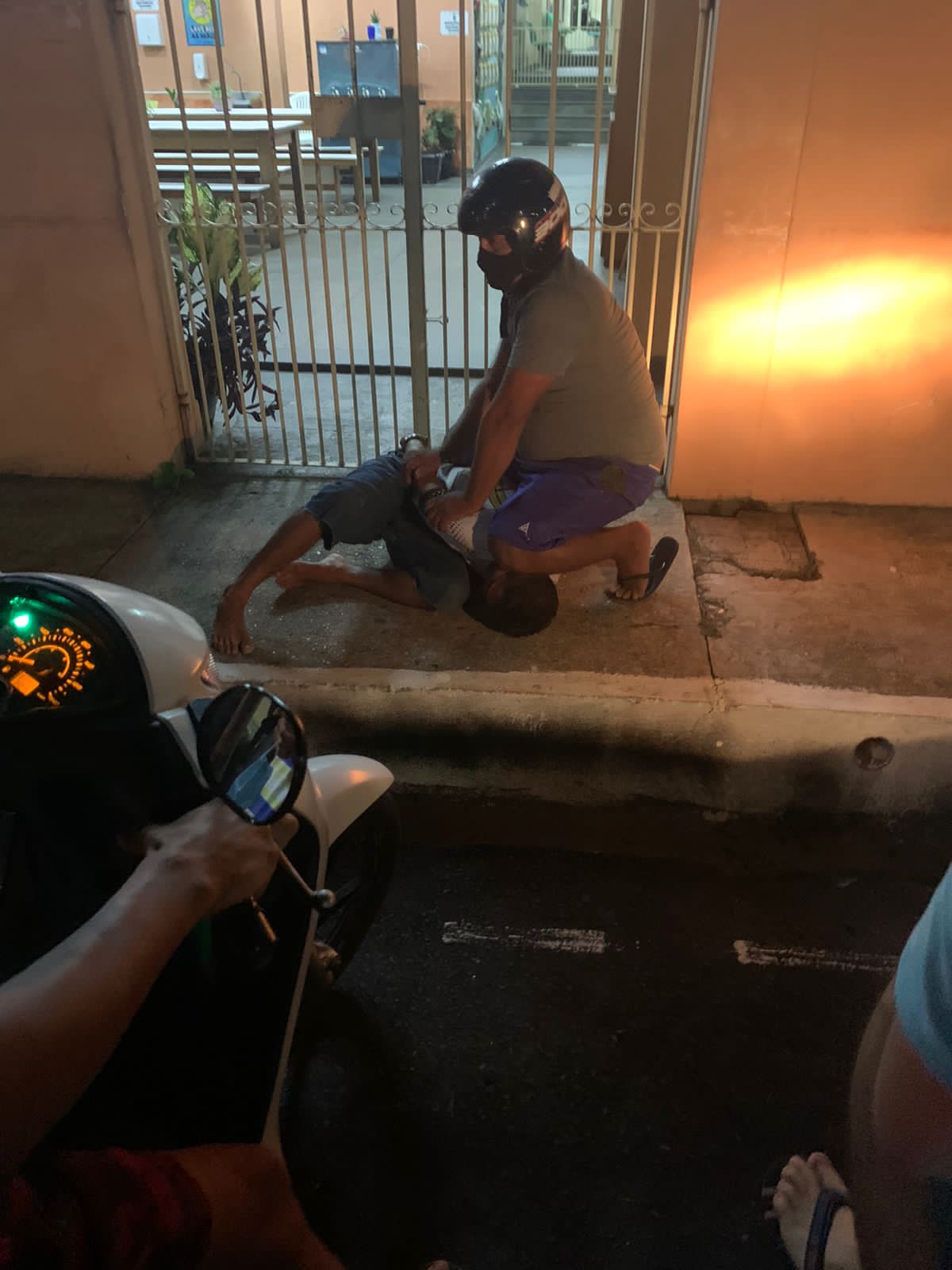 O assaltante havia roubado 2 aparelhos celulares e uma bolsa com dinheiro, realizando sua fuga pela via, mas foi seguido por mototaxistas que presenciaram a ação. Sem saída, o meliante tentou pular o muro de uma escola, mas foi detido pelos motoristas e vigilantes particulares.