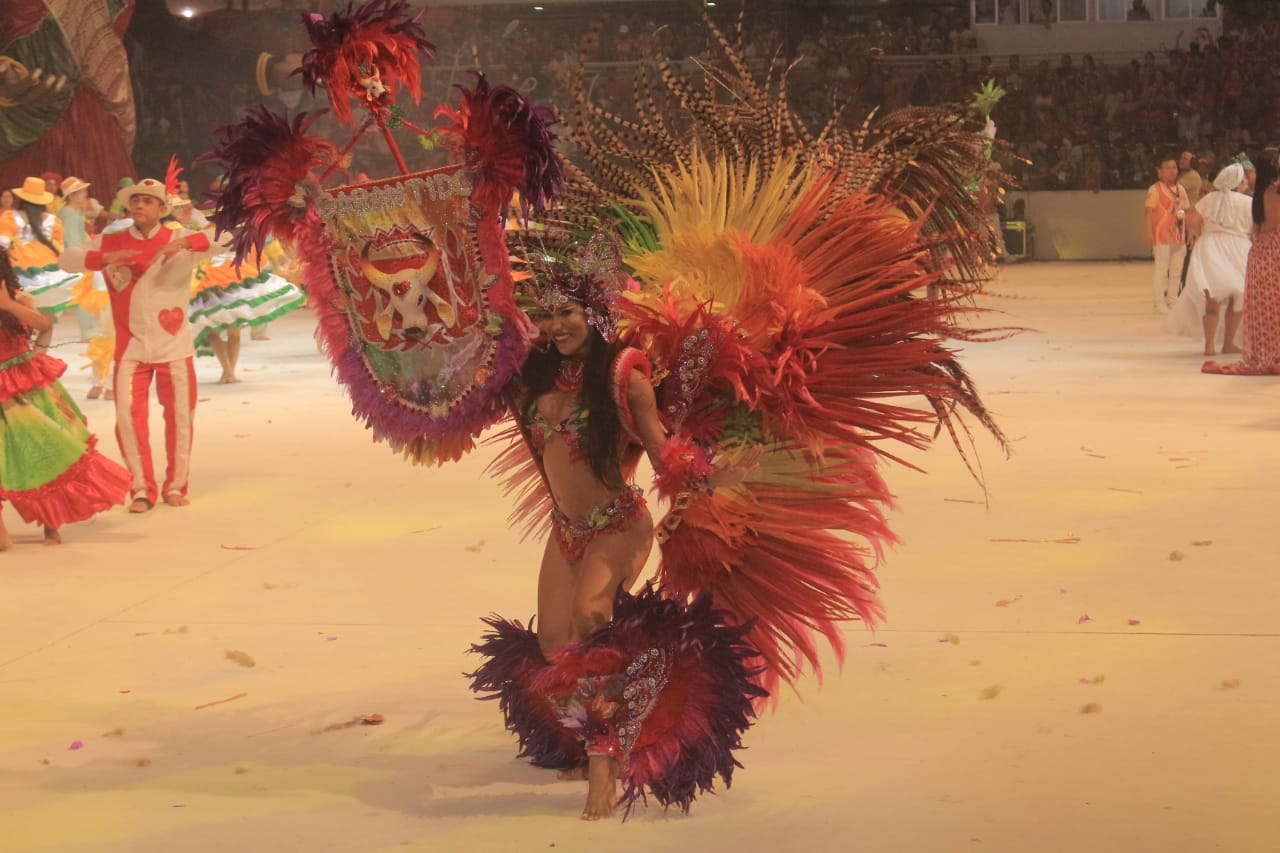 A Cunhã-Poranga do Boi Garantido, Isabelle Nogueira, afirmou que defender o item tem o sentimento de gratidão, além de se sentir muito feliz no momento em que está colocando em prática na arena tudo o que foi planejado durante meses. “Superação. Esse é o maior sentimento que a gente tem. Superação e gratidão”, ressaltou.