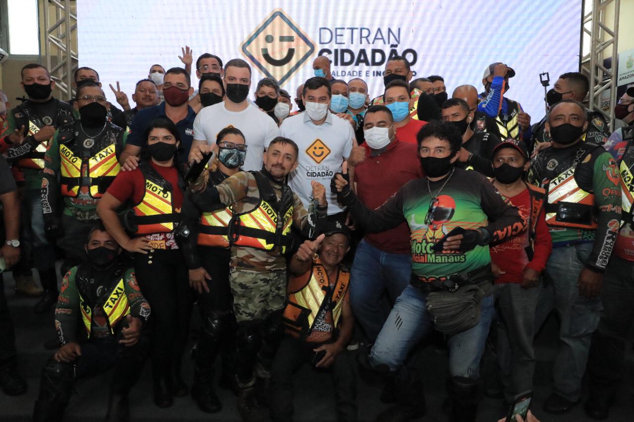 Manaus/AM - O governador Wilson Lima lançou, nesta quarta-feira (17/11), o programa Detran Cidadão, que deve alcançar mais de 300 mil pessoas de baixa renda, até 2023, com benefícios como a emissão gratuita da Carteira Nacional de Habilitação (CNH) e isenção de taxas para cursos do órgão voltados a mototaxitas e motofretistas. Por meio do programa, também serão entregues 40 mil capacetes e coletes e oferecidos cursos de legislação do trânsito em escolas.